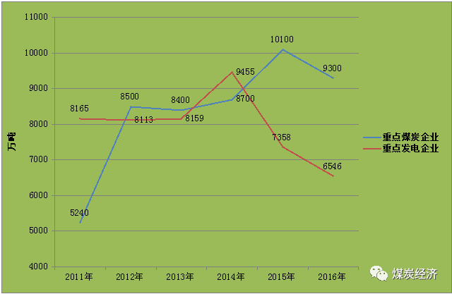 图7 2011-2016年全国重点煤炭企业和发电企业库存情况