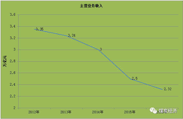 自2012年开始,煤炭企业营业收入逐年下滑。2016年,全国规模以上煤炭企业主营业务收入为2.32万亿元,较上年减少0.18万亿元,下降1.6%。2012-2016年全国规模以上煤炭企业主营业务收入见图10。