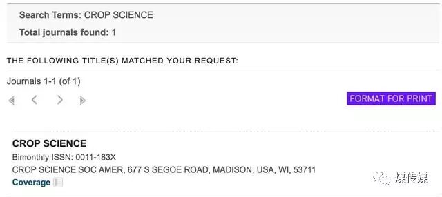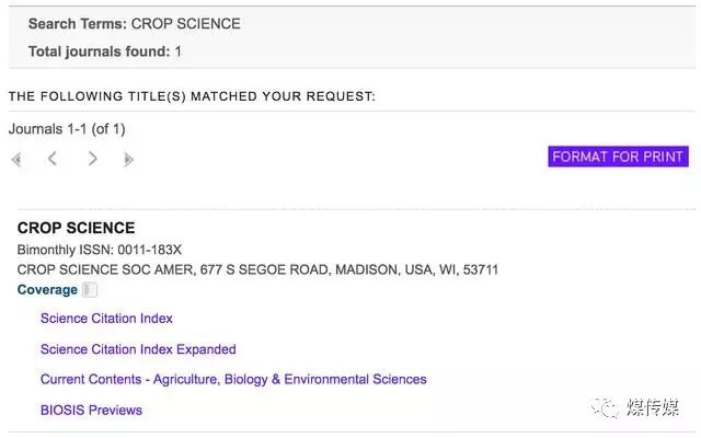 再点击Coverage,即可得到crop science期刊的收录情况为SCI & SCIE: