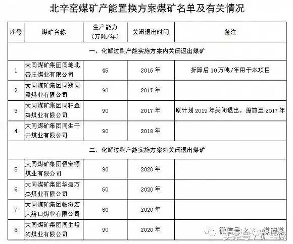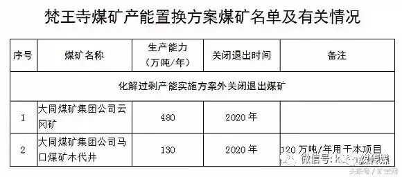 2016年底,山西发改委网站披露了第二批山西省煤矿产能置换方案,目前已确定共计六家煤矿实施产能置换。涉及同煤集团梵王寺煤矿、阳煤集团七元煤矿和焦煤集团庞庞塔煤矿,加上第一批的同煤集团金庄(马道头)煤矿、北辛窑煤矿(同煤集团)和晋煤集团三交一号煤矿。